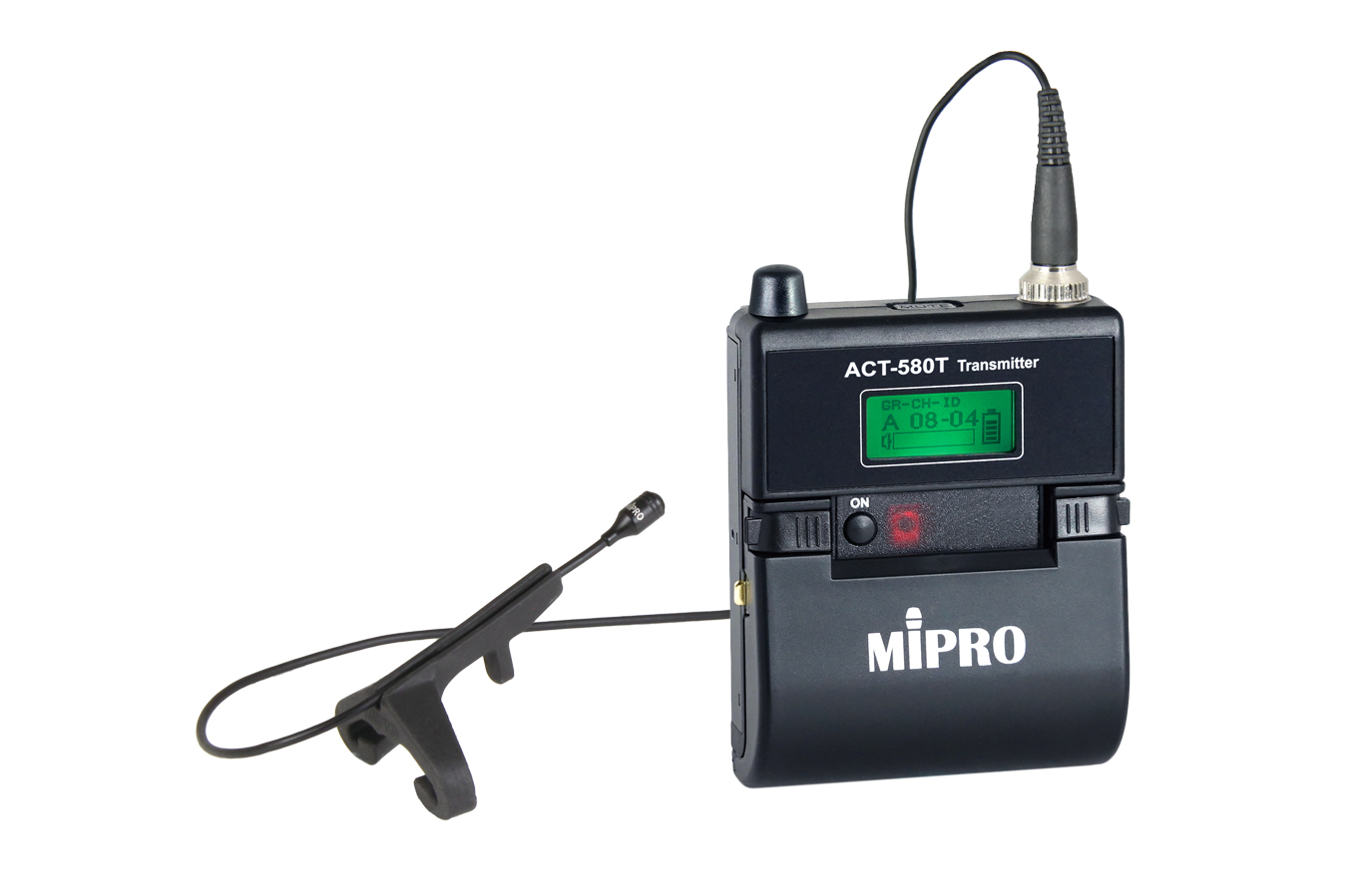 - VM-10L microphone combined with the ACT-580T digital bodypack transmitter, designed for violin and viola pickup, delivering natural, high-fidelity sound with stable wireless performance.