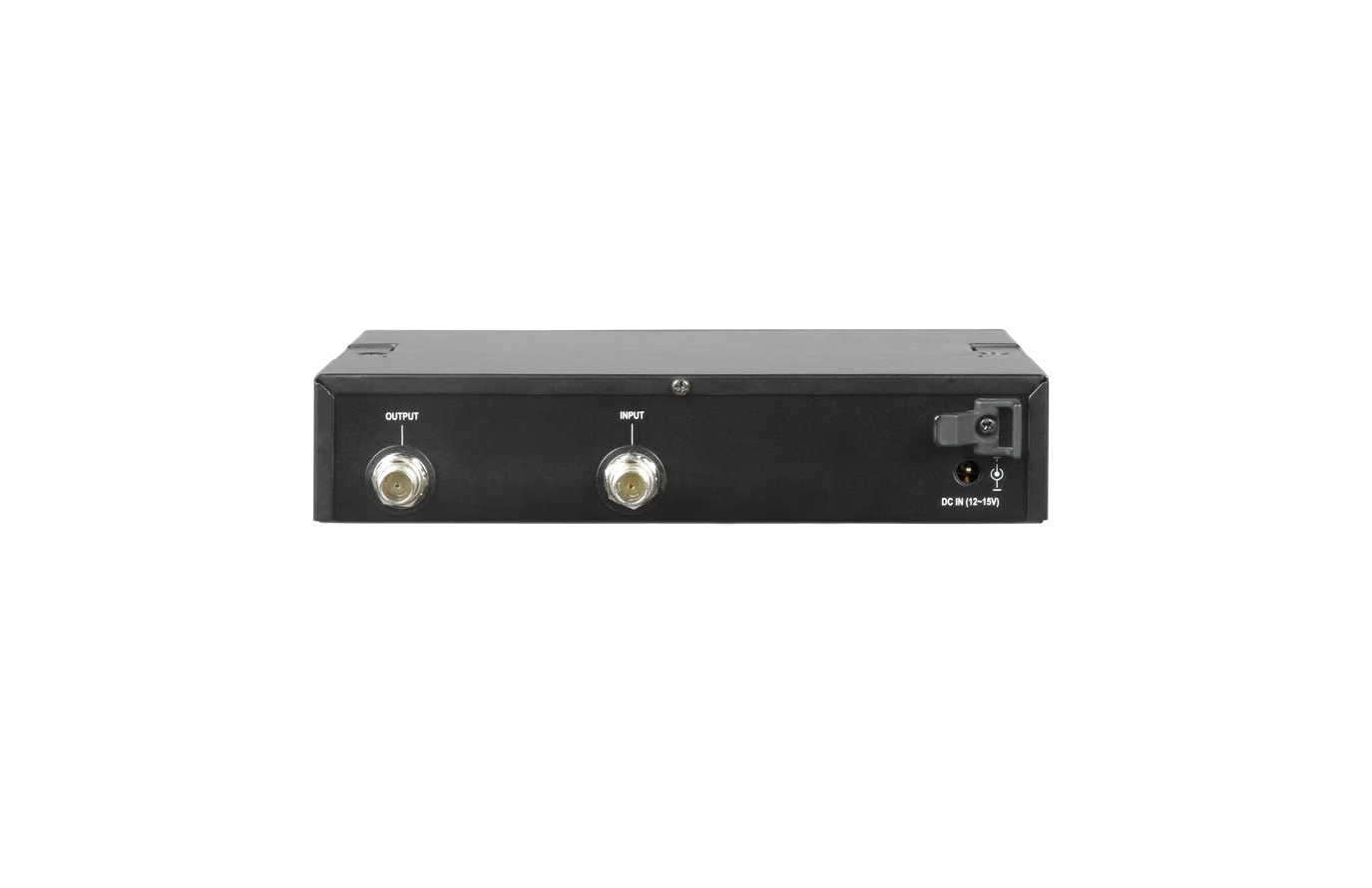 - Covers UHF 470 – 960 MHz frequency range and amplifies transmitter output power for long-distance transmission.
