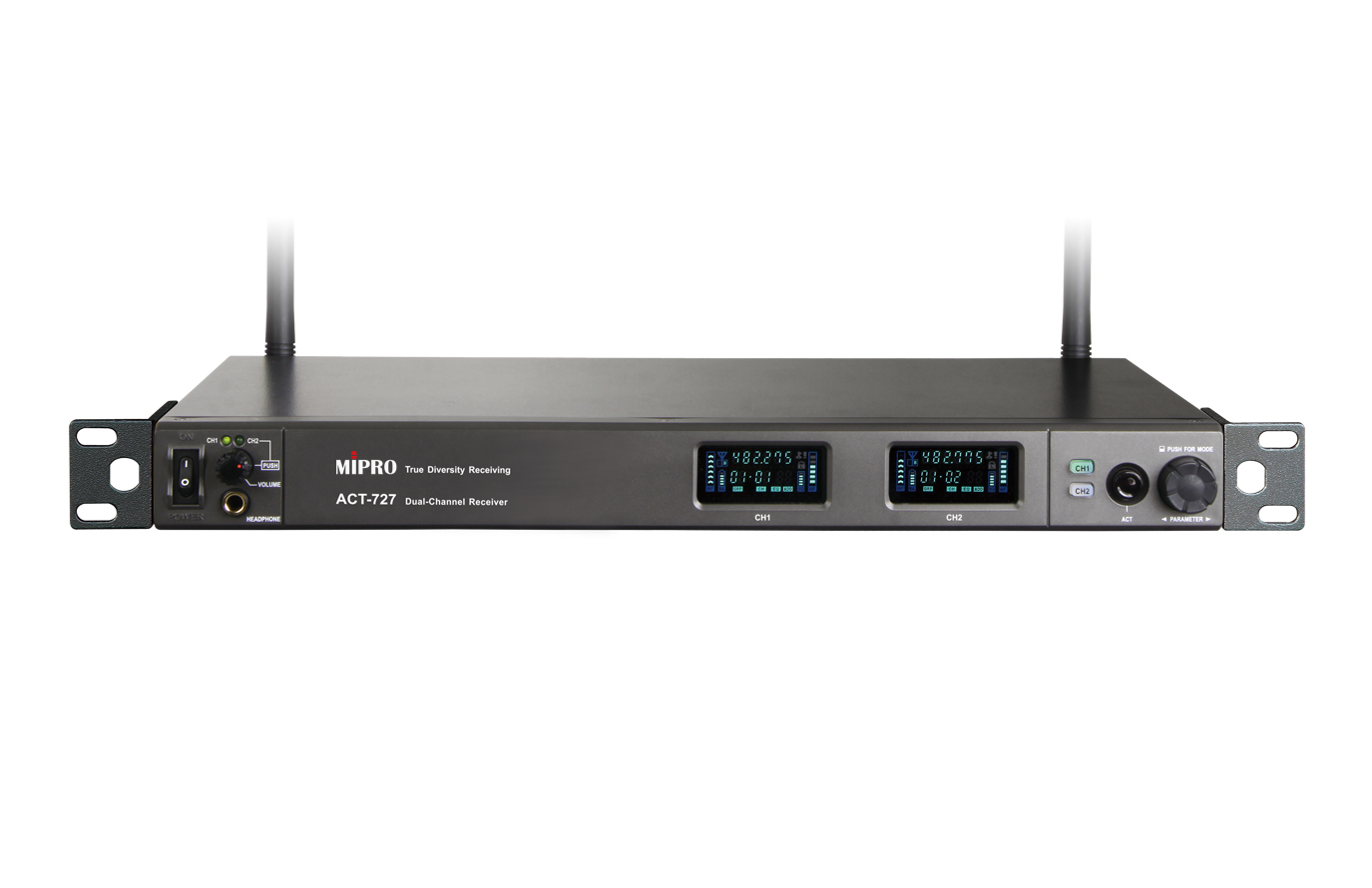 - Equipped with MIPRO’s proprietary 72 MHz wideband receiving circuit to maximize available channels and minimize intermodulation interference.