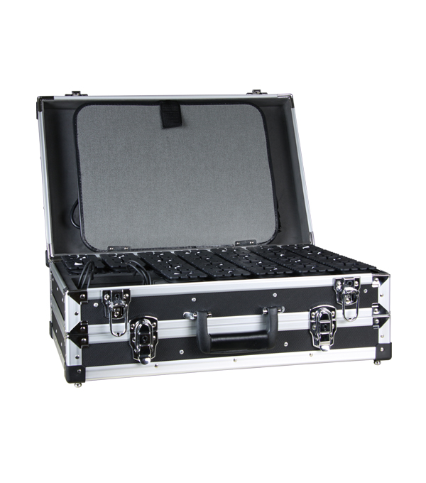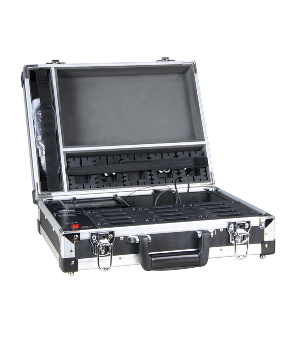 MIPRO 發射器與電池組專用的充電解決方案,提供多槽式充電器與收納箱設計,方便集中充電與保管。