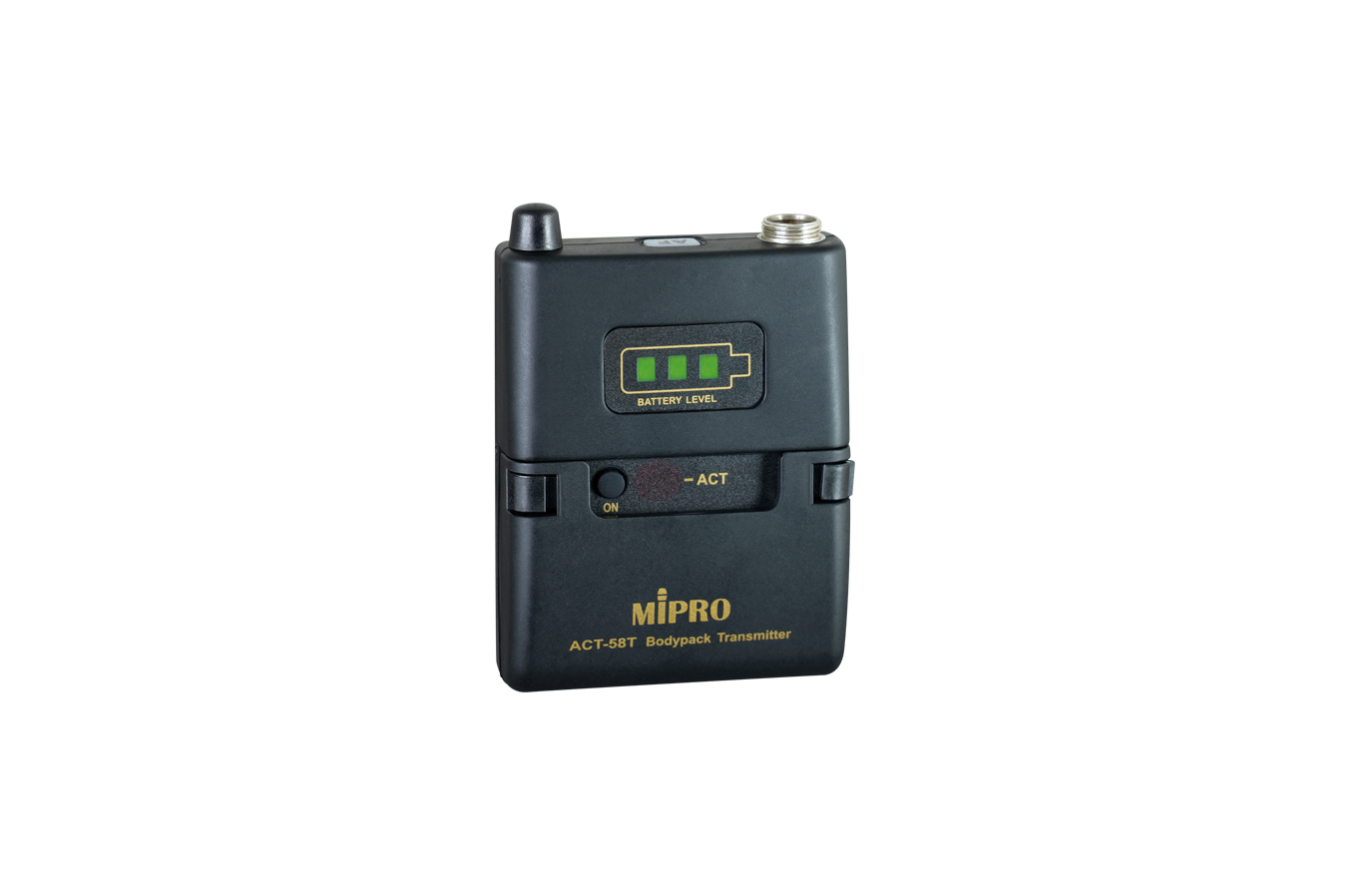 - ISM 數位系列專用佩戴式發射器,可搭配 MIPRO 5 GHz 系列接收機與無線擴音機,適用於小型演出與會議等場域。