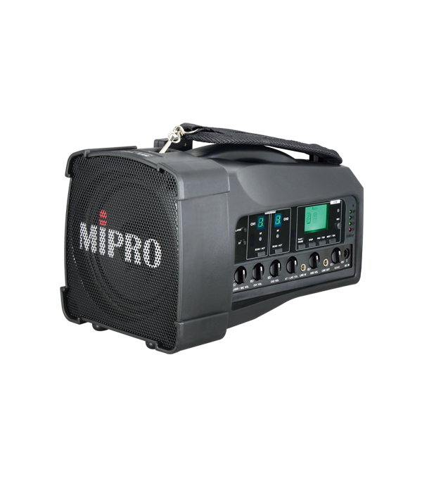 輕巧易攜的無線喊話器,適合教學、簡報與小型活動使用。提供單頻道或雙頻道無線接收配置,並支援藍牙播放與 USB 錄放音,方便操作,續航持久。