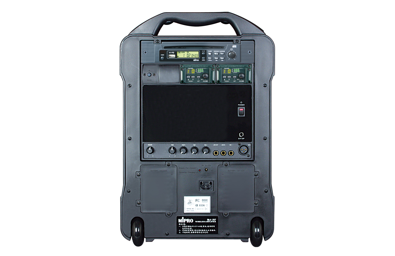 - 模組化設計,支援無線接收與播放模組,並具備外部音源與有線麥克風輸入。
