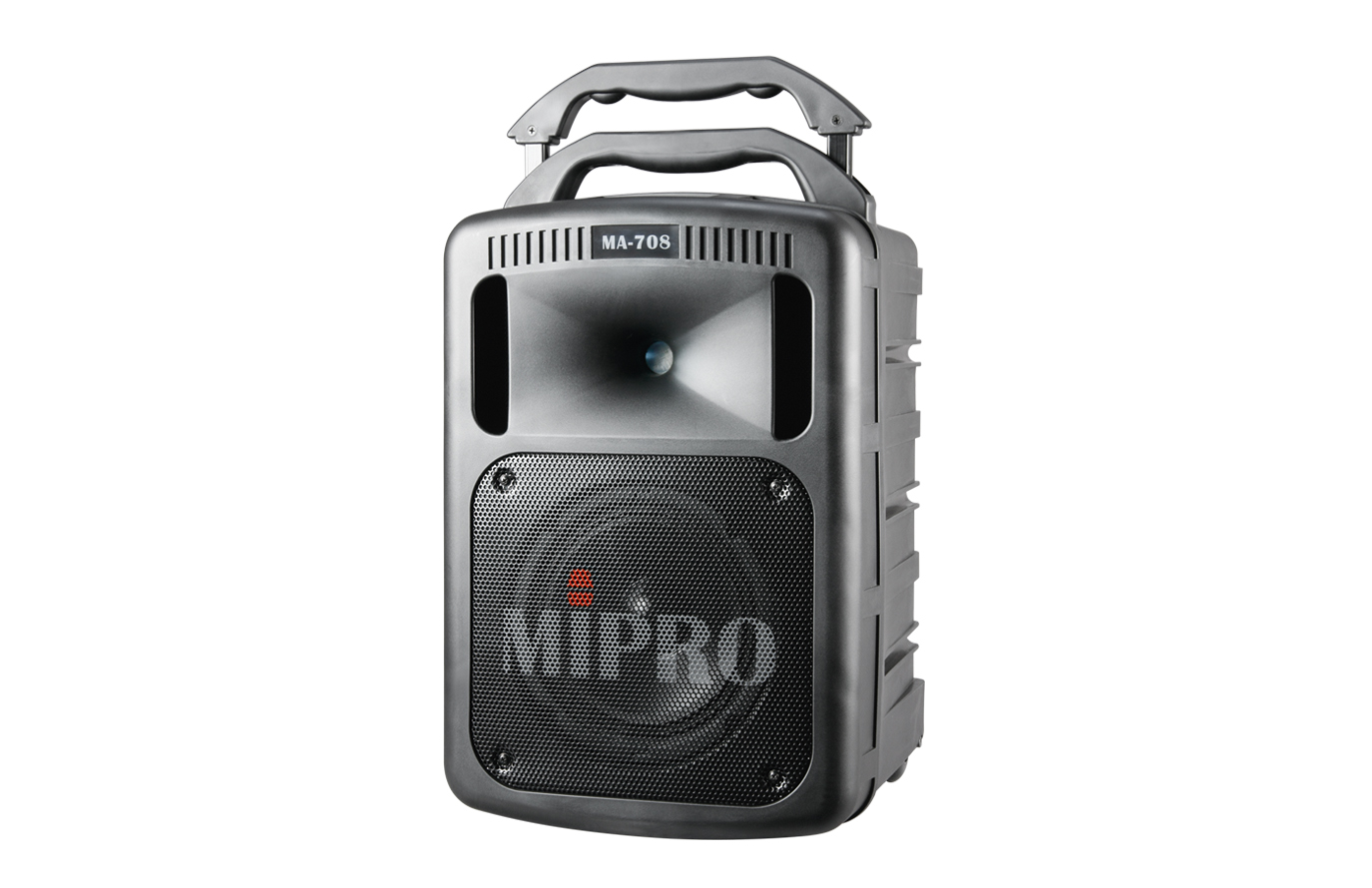 - 具外接喇叭輸出,可搭配 MA-708EXP 被動式音箱;或加裝無線發射模組,連結 MA-708AXP 主動式音箱,擴大擴音範圍。