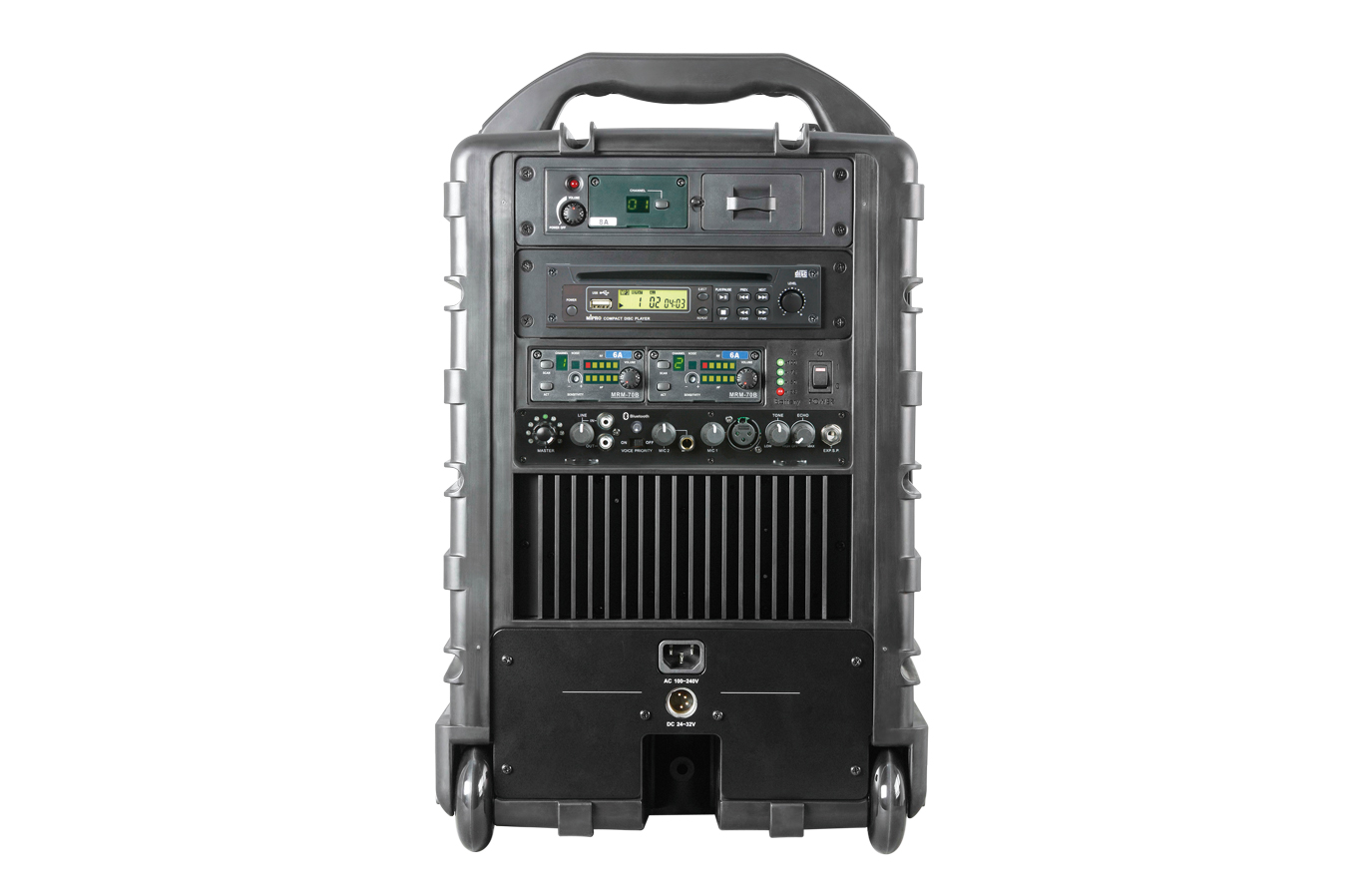 - 模組化設計,支援無線接收、發射與播放模組,外部音源與有線麥克風音量可獨立調整。