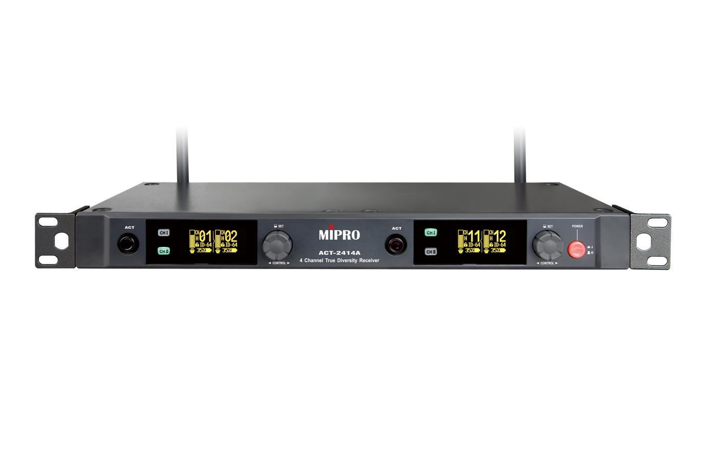 - 可搭配 ACT-240 系列手握式與佩戴式發射器,並相容 MIPRO 其他 2.4 GHz 專用發射器。